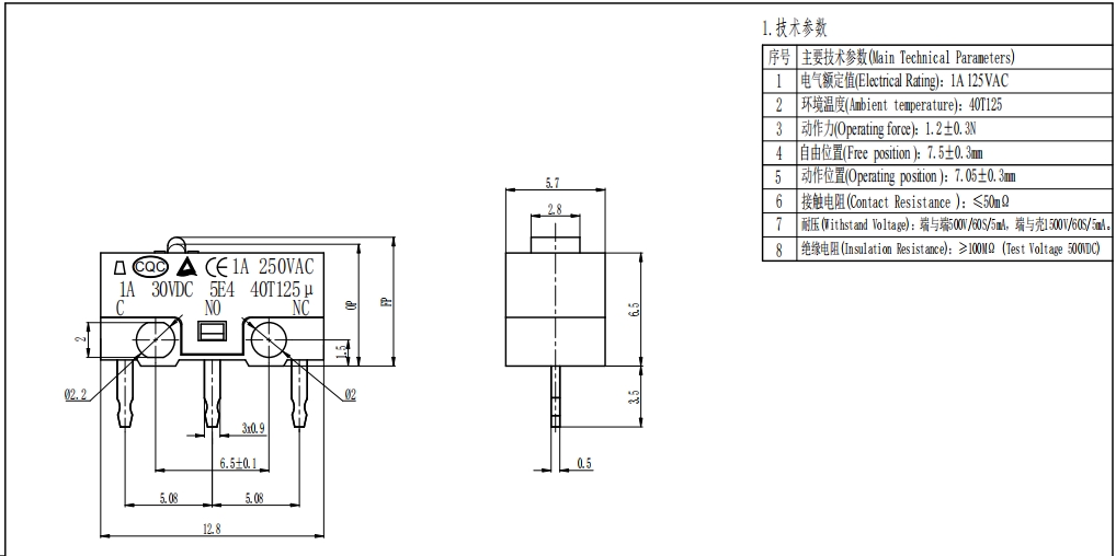 Utens patented actionis disrumpensorum mechanismi velocem, responsionis trigger tempus est ≤8ms, perficiendo meliori 25% comparato cum permutationibus Micro translaticiis. Felis Peregrinatio praecise inter 0,3-1.0mm temperatur, cum vi operativa extensionis 1.5-4N. Compressio responsionis manifesta et rigida, sine lusu vel sine adhaerente, permittens accuratam potestatem 'lucis tactus coniungere, emissionem rumpere,' perfecte apta ad missiones quaerunt altum felis sensibilitatem. Contactus summus puritatis stannum argenteum efficiunt et cum certo macula glutino discursum est, cum initiali contactu resistente ≤30mΩ. Onus aestimatum sustinet 1A/250V AC et 3A/125V AC, efficaciter impediens contactum calefactionis vel incendii cum vena transit.