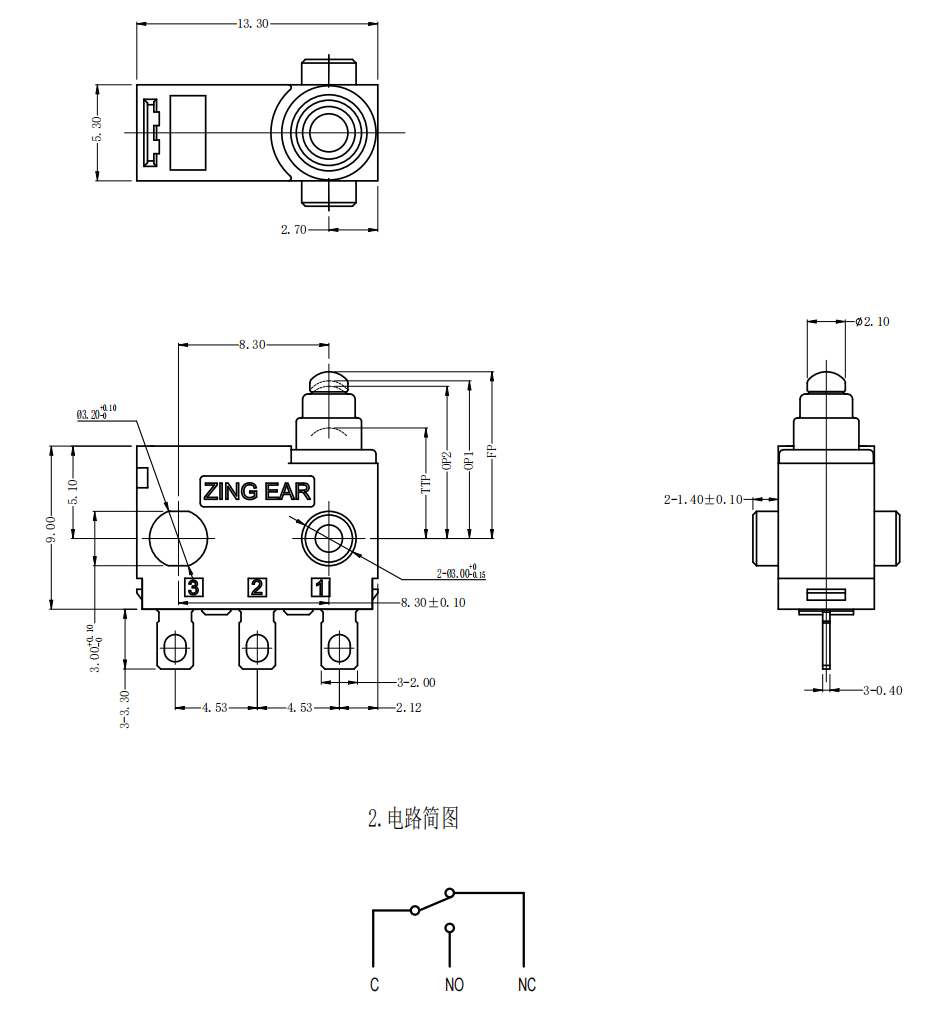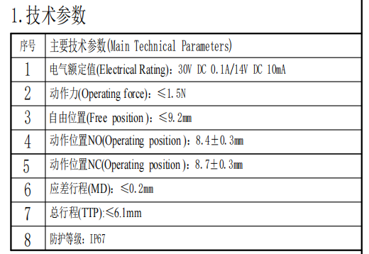 | 1 | Electrical Rating | 10MA 14V DC / 0.1VDC | |